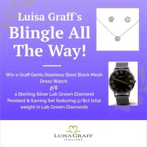 YOUR choice of one of the two prizes: a Graff Gents Stainless Steel Black Mesh Dress Watch or a Sterling Lab-Grown Diamond Pendant and Earring Set!